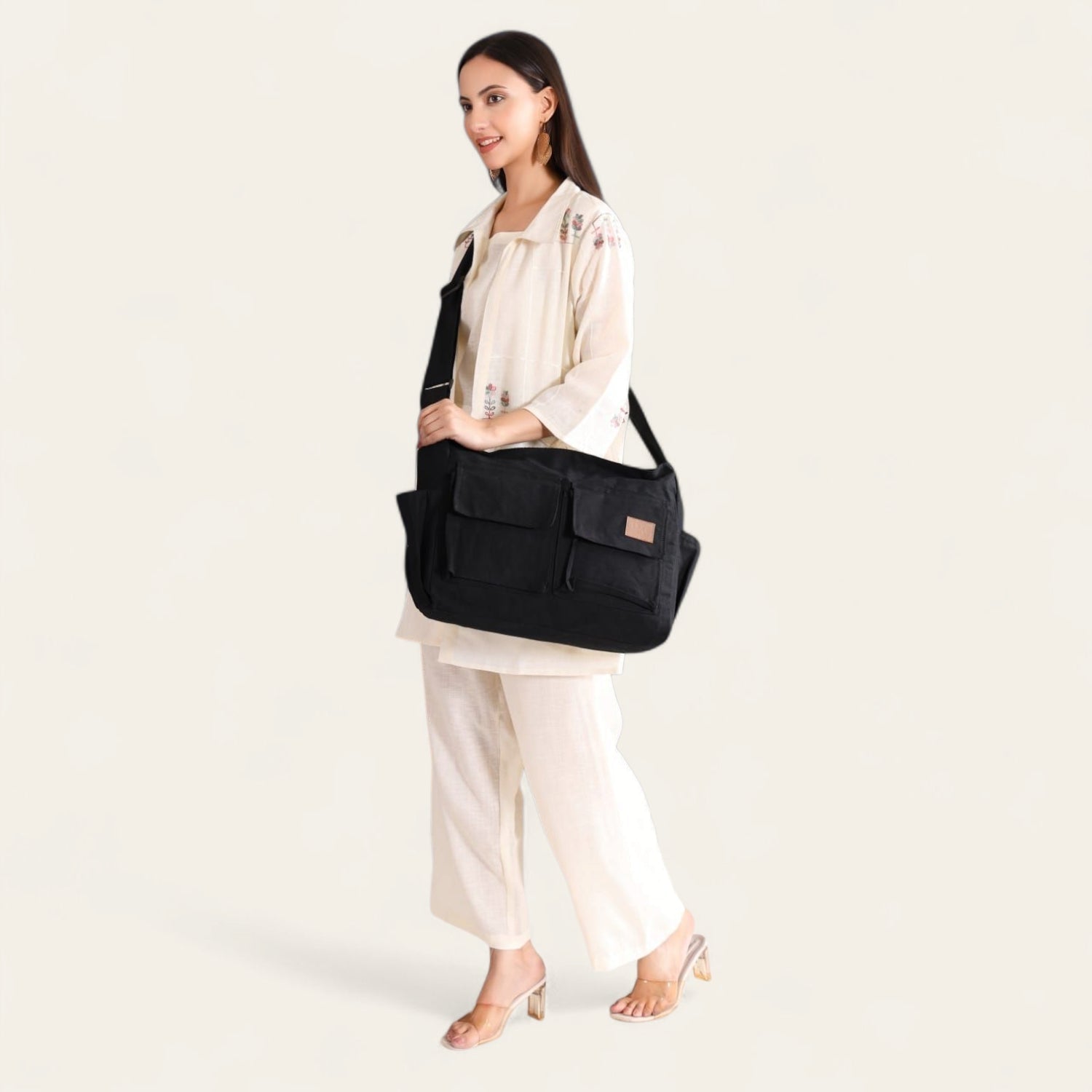 Effortlessly stylish and endlessly functional - the Lazybun Black Cargo Bag is your go-to carry-all for everyday living. Made from premium cotton canvas, this sleek unisex bag is lightweight, durable, and designed to complement any outfit or lifestyle.