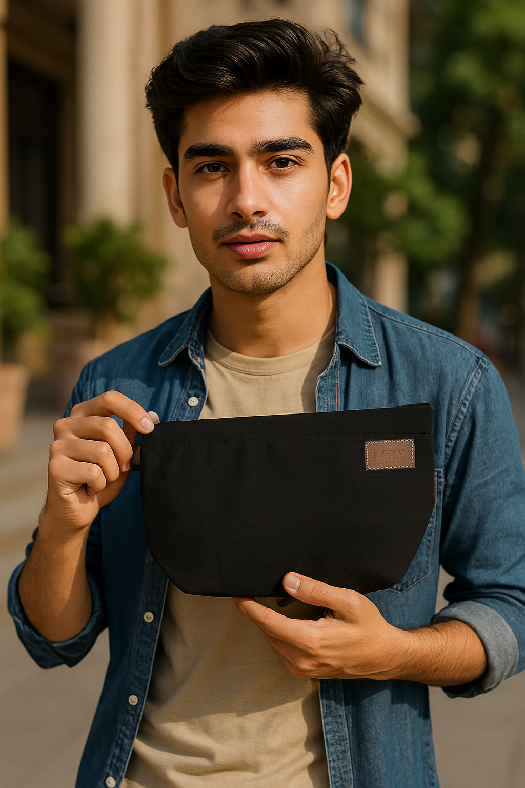 A sleek and functional pouch organizer crafted to elevate your everyday styling and organization needs. Made from pure cotton canvas with a waterproof inner lining, it balances minimalist charm with practical durability. Compact yet capacious, this black organizer is designed to neatly store daily essentials - from cosmetics and stationery to travel accessories - keeping everything accessible and well-arranged whether you’re rooted at home or out and about. The understated design makes it a versatile addition to any bag or desk.