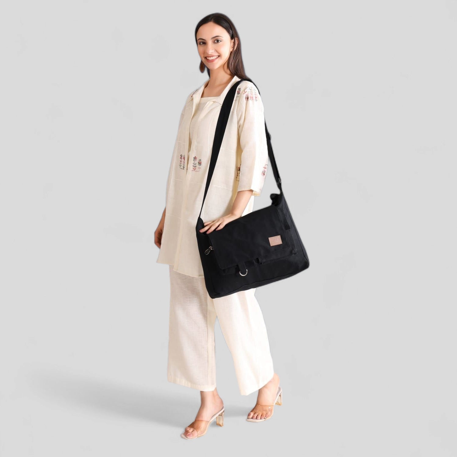 Simple, sleek, and built for everyday ease - the Lazybun Black Letter Bag is a timeless essential for anyone on the move. Crafted from durable cotton canvas, this bag perfectly blends minimalist style with practical function.