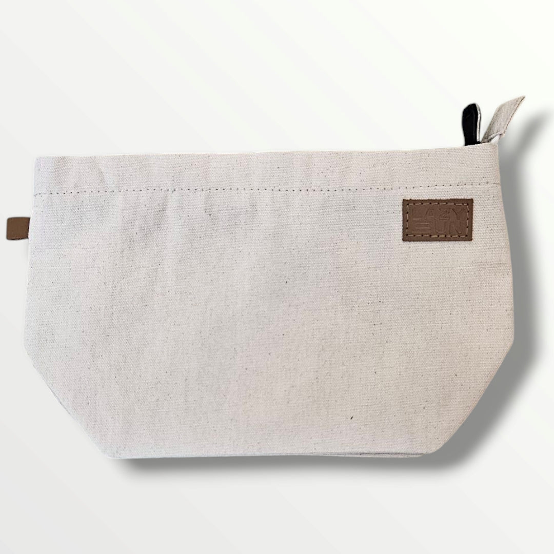 A minimalist yet functional pouch designed to keep your essentials organized on the go. Made from pure cotton canvas with a waterproof inner lining, this organizer effortlessly blends everyday utility with clean, understated style. Its elegant white exterior complements any bag, while the structured form and spacious interior ensure all your small items stay neat and within reach.
